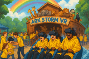 Step aboard animal-themed coaster cars and journey through a massive, multi-level replica of Noah’s Ark